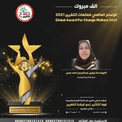 مهندسة أردنية تحصل على الوسام العالمي لصانعات التغيير لعام 2021