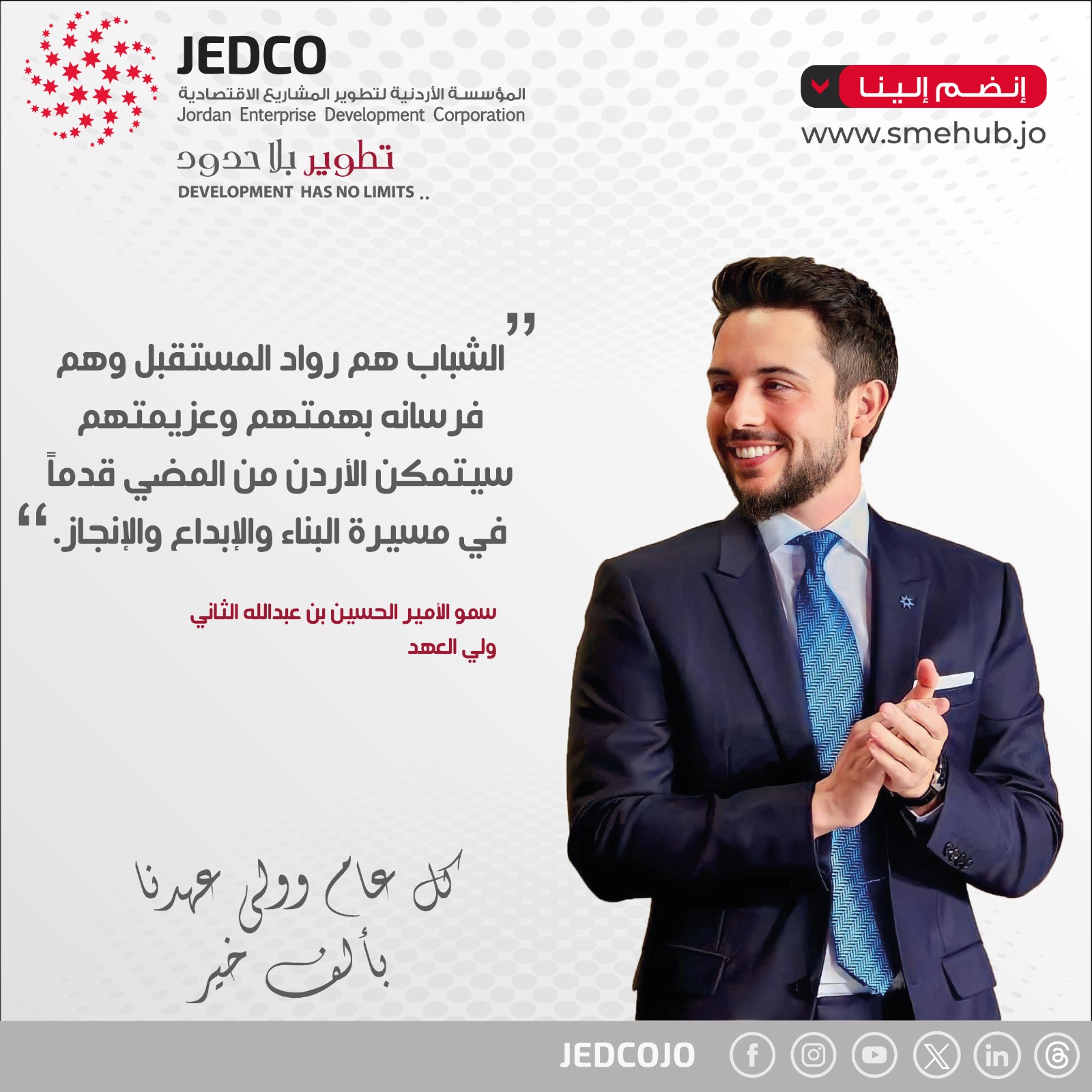 الأردنية لتطوير المشاريع “جيدكو” تهنىء ولي العهد بعيد ميلاده الميمون