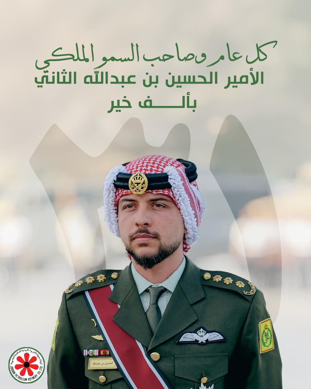 مصفاة البترول الأردنية تهنئ سمو ولي العهد بمناسبة عيد ميلاده الميمون