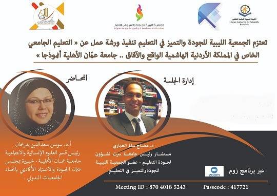 مشاركة د. بدرخان من عمان الأهلية بورشة عمل مع الجمعية الليبية للجودة والتميز في التعليم
