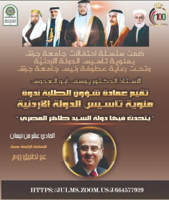 دولة السيد طاهر المصري يحاضر بجامعة جرش ضمن سلسلة احتفالات بمئوية تأسيس الدولة الأردنية