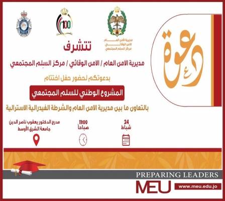 جامعة الشرق الأوسط MEU تعقد ورشاتٍ تدريبية بالتعاون مع مديرية الأمن العامِّ / مركزالسِّلم المُجتمعيّ والشرطة الفيدراليَّة الاستراليَّة