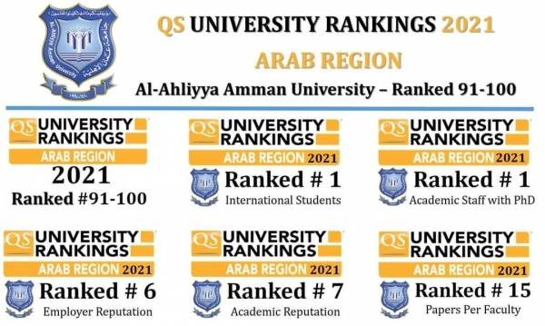 عمان الأهلية "الثانية محليا على الجامعات الخاصة والأولى عربياً بالنسبة للأساتذة والطلبة الوافدين" بتصنيف كيو.أس للجامعات العربية 2021