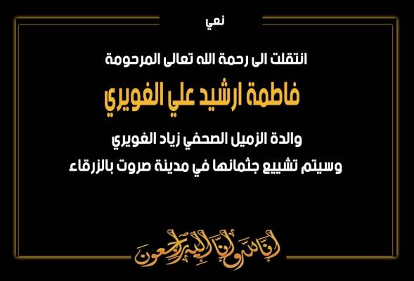 والدة الزميل الصحفي زياد الغويري في ذمة الله