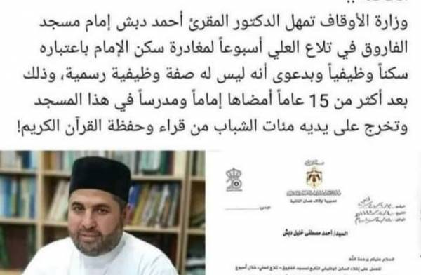 الخلايلة يوضح تفاصيل قرار فصل الامام الدبش