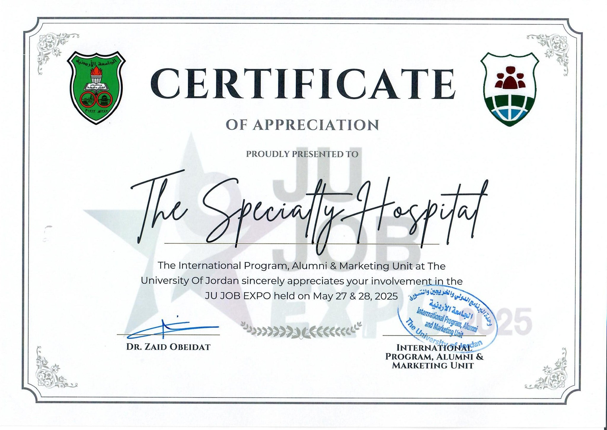 المستشفى التخصصي يشكر الجامعة الأردنية