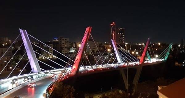 جسر عبدون بألوان العلم اللبناني تضامناً مع بيروت