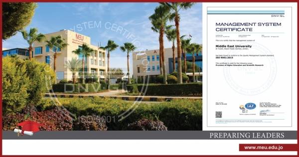 تجديد شهادة الآيزو 9001:2015 لجامعة الشرق الأوسط