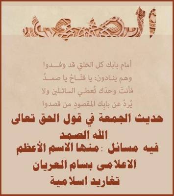 حديث الجمعة في قول الحق تعالى ( الله الصمد ) فيه مسائل منها الاسم الأعظم