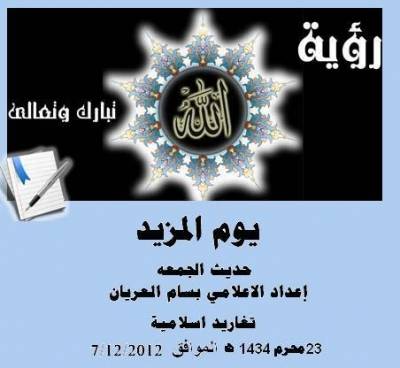 الجمعه يوم المزيد بالجنة يرى فيه المؤمنون الرحمن و يزيدهم الله جمالآ على جمالهم