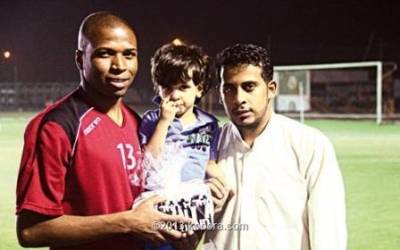 طفل يقدم هدية تذكارية للأردني بني عطية بعد التحاقه بتدريبات الفيصلي السعودي