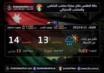 الإتحاد الأردني يبلغ منتخب "النشامى" بأن أجواء مباراته أمام أستراليا ستكون ممطرة !