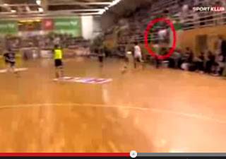 بالفيديو.. مشجع يسقط فوق رأس لاعبة