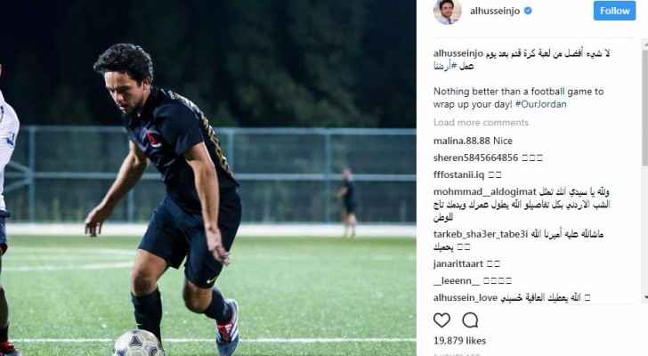 نشر الأمير حسين عبر صفحته الخاصة بموقع " انستغرام " صورة له خلال لعب كرة القدم .