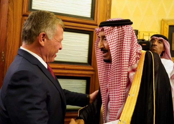 وشدد جلالة الملك على وقوف الأردن إلى جانب المملكة العربية السعودية الشقيقة في مختلف الظروف، معربا جلالته عن تقديره للجهود التي تبذلها السعودية بقيادة خادم الحرمين الشريفين من أجل دعم العمل العربي المشترك وتعزيز فرص تحقيق السلام في المنطقة.