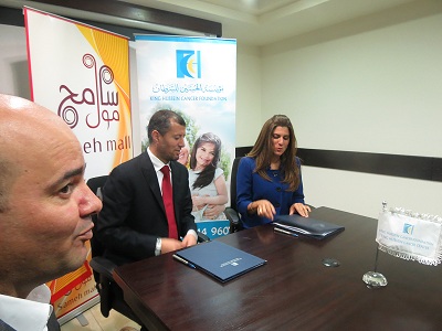 وقعت مؤسسة الحسين للسرطان ومجموعة سامح مول للإستثمارات مذكرة تفاهم حول إنضمام المجموعة إلى برنامج التسمية والتشريف التابع للمؤسسة من خلال تسمية قاعة إنتظار في العيادات الخارجية في مبنى التوسعة الجديد الذي تسعى إلى استكماله لاستيعاب لاستيعاب الأعداد المتزايدة من مرضى السرطان من الأردن والوطن العربي.