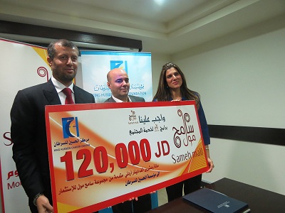 وبموجب المذكرة ستتبرع مجموعة سامح مول للإستثمارات بمئة وعشرين ألف دينار اردني ( 120.000 دينار اردني ) مقسمة على مدار عامين ..